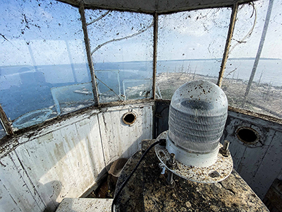 The lantern room, with its old beacon at Wisconsin’s Pilot Island Lighthouse, shows what happens after years of neglect. We can only wonder what the lighthouses keepers would say if they were to see this image. Back to the edition of: Nov/Dec 2021