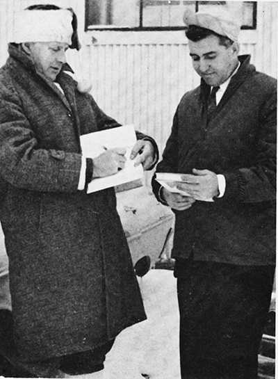 Edward Rowe Snow (l) is shown here autographing one of his books for his pilot, Albert L. Aucoin, who died in a mysterious plane crash, in what is believed to have been murder, at the age of 38 on August 15, 1964. Back to the edition of: Jan/Feb 2022