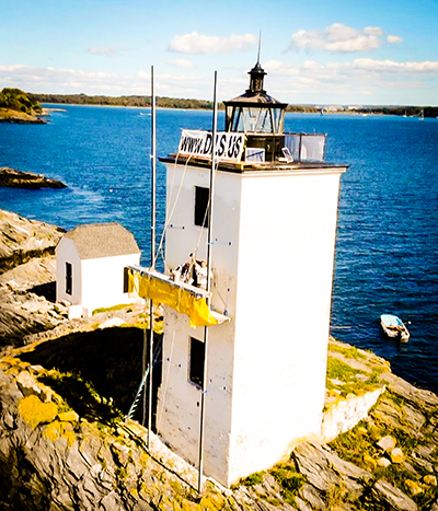 The Dutch Island Lighthouse undergoing painting this past November. The work was done by LaMontagne Woodworking. The lighthouse, and its surviving oil house, sits on an 81-acre island in the west passage of Narragansett Bay, Rhode Island. (Photo courtesy DILS) Back to the edition of: Jan/Feb 2022