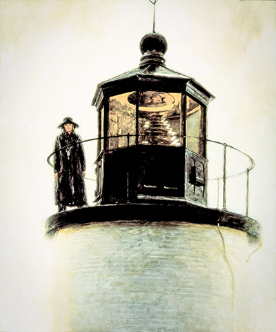 In 1992, Jamie Wyeth painted Orca Bates standing on the lantern deck of Tenants Harbor Light in Light Station. Since there hasn’t been a Fresnel lens in the tower since the early 1930s, Jamie had to imagine what it would have looked like. The original lens was only a 4th order in size. (© Jamie Wyeth/ARS) Back to the edition of: Jan/Feb 2022