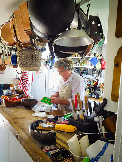 Jamie Wyeth puts his lighthouse-made pesto pods into a container in the kitchen at Tenants Harbor Light. He has a robust garden next to the lighthouse where he can grow herbs in the summers. Back to the edition of: Jan/Feb 2022