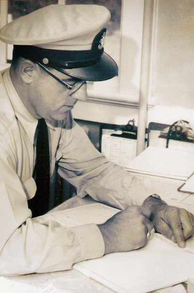 On the same day that Russell Lane led the 1958 rescue off Whitehead Island Lighthouse, Weston Gamage, who was the Office-in-Charge of the Fletchers Neck Life Boat Station, down the coast in Biddeford Pool, Maine, also led a rescue of a disabled 27-foot sloop with two men on board, six miles off the coast of the station. Weston Gamage had previously been a lighthouse keeper at the Rockland Breakwater Lighthouse, and from 1961 to 1962 he was the Officer-in-Charge (keeper) of Portland Head Lighthouse in Cape Elizabeth, Maine. During his long Coast Guard career he also served at the Merrimack River and Plum Island Life Boat Stations, both in Massachusetts. (Dave Gamage collection, Lighthouse Digest archives)