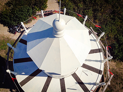 Drone image showing the applied undercoating on the cupola and deck at Nauset Beach Lighthouse before the new coat of paint was applied. (Courtesy Mark Prible of ICC Commonwealth) Back to the edition of: Jan/Feb 2022