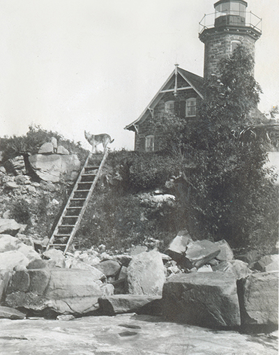 Gertrude’s faithful dog Sandy is shown at the top of the stairs that lead to and from the rocky beach below Wisconsin’s Sand Island Lighthouse. (Gertrude Wellisch and Walton Wellisch photo albums) Back to the edition of: Jan/Feb 2023