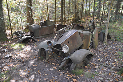 One summer, Gertrude Wellisch brought a car out to Sand Island and parked it by the dock, leaving the key in the ignition. “Anybody who needs to haul stuff around,” she announced, “go ahead and use my car.” The rusted-out car, sinking in the mud, in the forefront, is a 1930 Chevy Coupe that belonged to Gertrude Wellisch. The National Park Service identified the model of the car from the number on the serial block. It is believed that the car in the back, a Model T, is from another island family. Both cars are in the woods near the dock at East Bay on Sand Island. Wouldn’t it be neat if the old car could be at least partially restored and put on display somewhere on the island, perhaps by the lighthouse? (Courtesy Apostle Islands National Lakeshore)