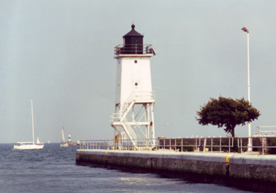 It is more than likely that the Chicago Harbor Guidewall Lighthouse in Chicago, Illinois, shown here, once stood in Wisconsin as the former Kewaunee Pierhead Front Range Lighthouse. (Photograph courtesy of Bob & Sandra Shanklin, The Lighthouse People.) Back to the edition of: Mar/Apr 2011