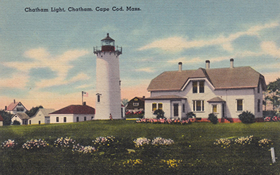 This colorful vintage linen post card of the Chatham Lighthouse Station, now with only one tower, shows a beautiful and well-manicured lawn. Back to the edition of: May/Jun 2023