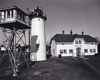Chatham Lighthouse with the lookout tower, which was built by the Coast Guard in the 1950s, when the small lifeboat operations were moved to the site. Back to the edition of: May/Jun 2023