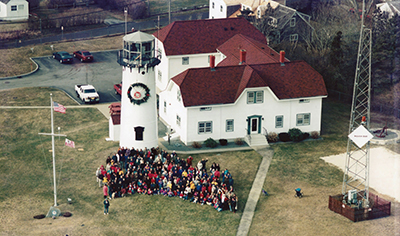 As part of the community’s First Night festivities, residents of Chatham, Massachusetts, gathered on December 31, 1997, for this group photo in front of the Chatham Lighthouse. The aerial photo was taken by Spencer Kennard of the Cape Cod Times. Back to the edition of: May/Jun 2023