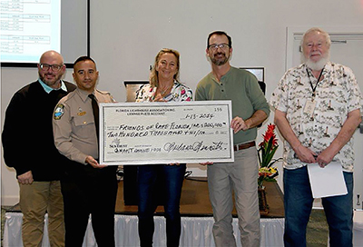 A check for $200,000 for work on the lantern room windows of Cape Florida Lighthouse is presented on Jan 26, 2024 by the Florida Lighthouse Association to The Friends of Cape Florida State Park. (left to right) John Hill (FLA Board Member), Jorge Brito (Bill Baggs Cape Florida State Park Manager), Christina Bracken (Friends of Cape Florida State Park), Mike Bennett (President of FLA), Chris Belcher (FLA Board Member). Back to the edition of: Mar/Apr 2024