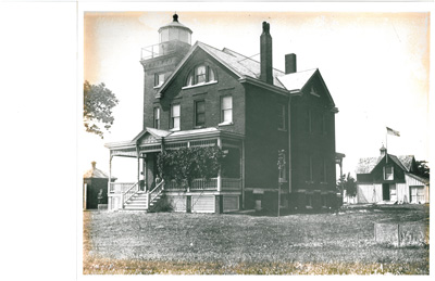 Early 1900s view of South Bass Island Lighthouse showing the original open porches and growing vines. The lighthouse keeper is shown standing next to the house and two small children are on the porch. (Photo courtesy Ohio Sea Grant.) Back to the edition of: Nov/Dec 2012