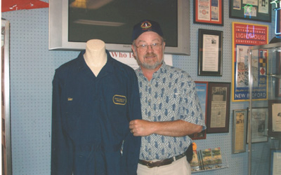 Malcolm Rouse, the last keeper of Owls Head Lighthouse, is shown here in 2007 in the Museum of Lighthouse History, next to his Coast Guard work uniform that he wore at Owls Head Lighthouse. When ALF decided they no longer wanted The Museum of Lighthouse History, which was originally founded by Tim Harrison, they gave it up and the museum’s artifacts and collection was merged into the Maine Lighthouse Museum in Rockland, Maine. Rouse’s Coast Guard work uniform is now in their collection. (Lighthouse Digest photo.) Back to the edition of: Jan/Feb 2013