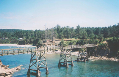 The Cape Arago Lighthouse Bridge as it appeared in 1998. (Lighthouse Digest archives photo by Richard C. Houck.) Back to the edition of: Jan/Feb 2013
