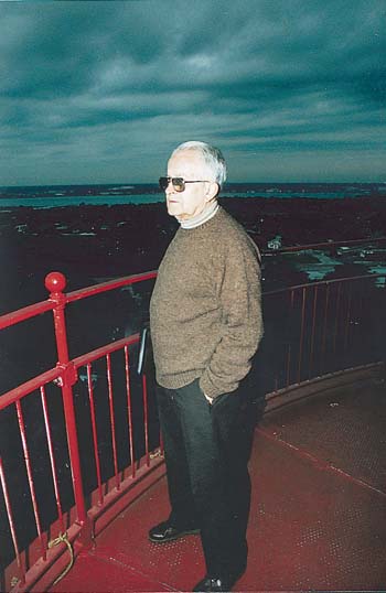 Lighthouse Depot's Bob Gilbert on the outer balcony of St. Augustine Lighthouse as he lets his mind drift back in time to another era and a past life when he in fact might have been a lighthouse keeper. Back to the edition of: April 2000