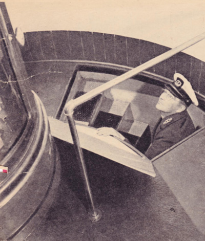 Head keeper Arthur S. Strout about to enter the lantern room at Halfway Rock Lighthouse. During World War II, keeper Strout kept the light shining at Halfway Rock Lighthouse. Government reports of the time indicated “that because of the increased amount of naval traffic plying eastern coastal waters the importance of the light that gleams from Halfway Rock Lighthouse is greater than ever.” (Lighthouse Digest archives.) Back to the edition of: Jul/Aug 2014