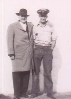 John Strout (l) with Portland Head Light's Coast Guard Keeper Burns at Portland Head Light in 1955.