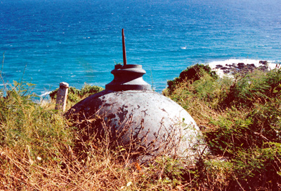 The dome of the lantern room of Culebrita Lighthouse rests in the grass a few hundred feet from the lighthouse, where it landed after being blown off the lighthouse during a hurricane. Back to the edition of: Mar/Apr 2015
