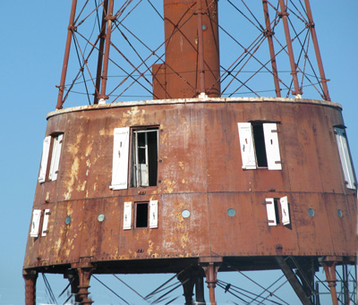 Another close-up view of Carysfort Reef Lighthouse shows open shutters. A platform once existed here going around the tower where there used to be a balcony. Back to the edition of: Mar/Apr 2015