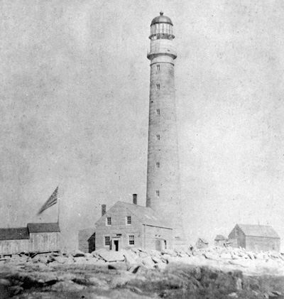 The Nottingham Galley was shipwrecked on Boon Island many years before the first lighthouse was built here in 1799. Shown here from a historic image is the 5th tower to be built here. It was completed in 1852 and the 133-foot tall tower still stands today. (Lighthouse Digest archives.) Back to the edition of: Nov/Dec 2015