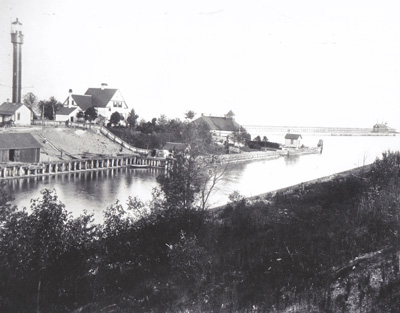 This photograph was taken shortly after the Sturgeon Bay Ship Canal Lighthouse was completed in 1898. The keeper’s house is clearly visible in this image. To the right, way off in the distance and almost not visible, is the Sturgeon Bay Ship Canal North Pierhead Lighthouse. (Lighthouse Digest archives.) Back to the edition of: May/Jun 2016