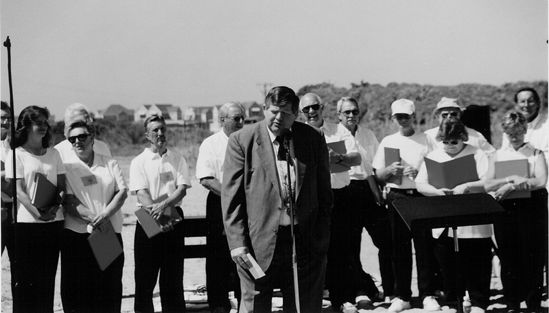 Pastor Roger Barnett, a descendant himself of Cape Hatteras Lighthouse keeper, Hezekiah Barnett, gives the opening prayer and official blessing to the Circle of Stones. Back to the edition of: June 2001