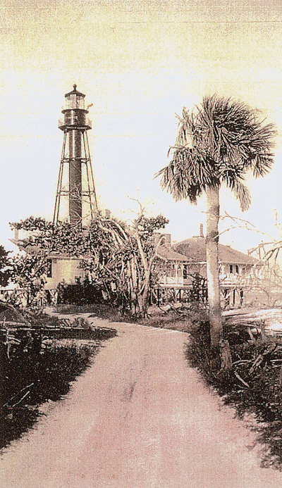 You can clearly see the damage to the trees in this photograph taken after the 1947 hurricane that hit Sanibel Island Lighthouse. Photograph courtesy of Mae and Margaret England. Back to the edition of: July 2001