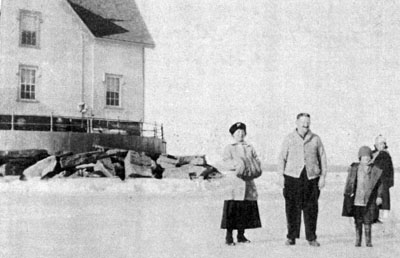 Keeper Andrews and family on the ice of a frozen Wickford Harbor. Photo courtesy of JoAnn Tarbox. Back to the edition of: January 2002