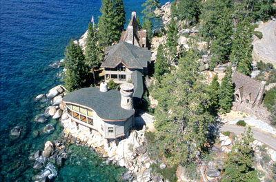 This aerial view shows the main lighthouse at Thunderbird Lodge on Lake Tahoe, in Incline Village, Nevada. Back to the edition of: February 2002
