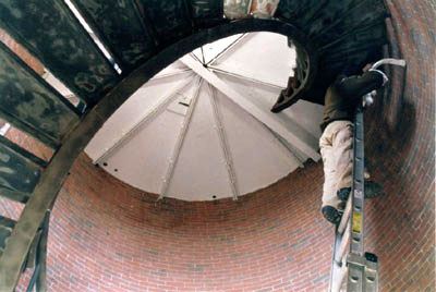 Workmen repairing the inside of the tower at Race Point. Back to the edition of: June 2002
