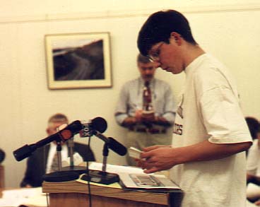 Benjamin Bragdon gives his presentation to the Transportation Committee. Ben used former U.S. Senator George Mitchell's statement that "Maine is known as the lighthouse state." Back to the edition of: May 1997