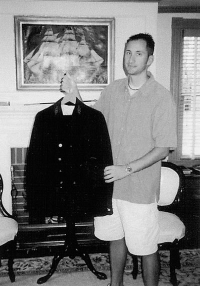 E. Michael DiPaolo displays a uniform once worn by long-time Delaware River and Bay lightkeeper Aaron Kimmey. Back to the edition of: November 2002