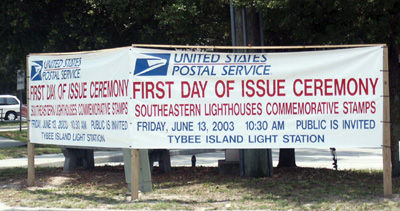 First Day of Issue sign on display at Tybee Island Lighthouse. Back to the edition of: August 2003