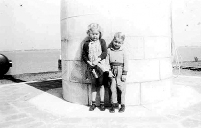 Anne (Gullette Moore) and her brother Jim (Sonny) Gullette pose by the flagpole monument at Fort Sumter—then & now. Photo courtesy of J. Carl Guillette. Back to the edition of: September 2003