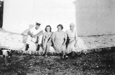 Keeper Spencer, Geraldine, Mrs. Spencer and Grandma Vick at the base of the tower at North Island Lighthouse in 1942. Back to the edition of: March 2004