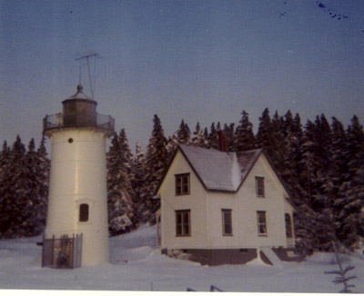 Little River Lighthouse after a snowfall. At the base of the tower, with a metal fence around it, is the generator. Back to the edition of: December 2004