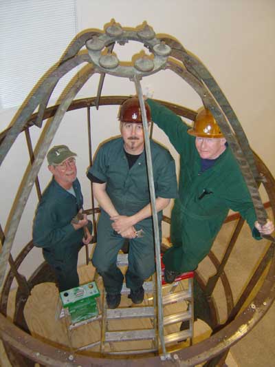 Dunlap, Fosberg and Woodward inside the casing that held the lost Cape Hatteras lens. Back to the edition of: May 2005