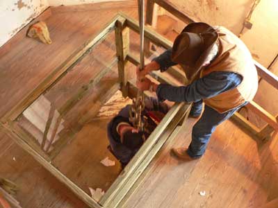 Workers from International Chimney inside Old Baldy in spring 2005. Photo courtesy of the Old Baldy Foundation Back to the edition of: July 2005