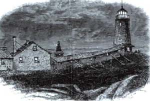 The first Eastern Point Lighthouse, from an 1876 engraving. The lighthouse was built in 1832 and torn down and replaced in 1848. Back to the edition of: May 1999