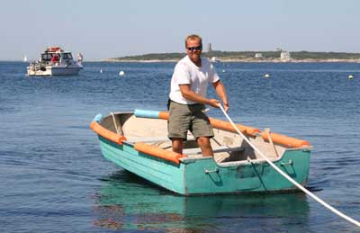 Rob Kenney of Captain Rob’s Dive Charters brings the skiff ashore from his boat Giant Stride. Back to the edition of: November 2005