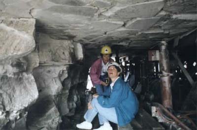 Bonnie Pfennighaus and Louise Barow, Outer Banks Lighthouse Society volunteers, look in wonder at the underside of the tower's foundation. The steel pole to the right is a temporary support until a shoring tower can replace it. America's tallest lighthouse is ready to be moved! Back to the edition of: June 1999