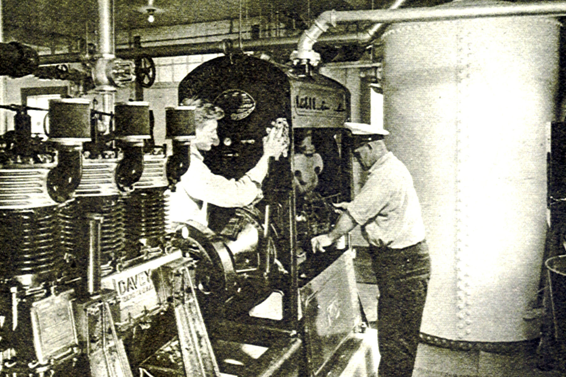 Lighthouse keeper Howard “Bob” Gray in the fog signal building at West Quoddy Head Lighthouse. The compressors filled the white tank with compressed air that powered the foghorn, which could be heard for 15 miles. Photo circa 1951. Photographs courtesy of Dorothy Meyer and Pam Grindle Back to the edition of: July 2006