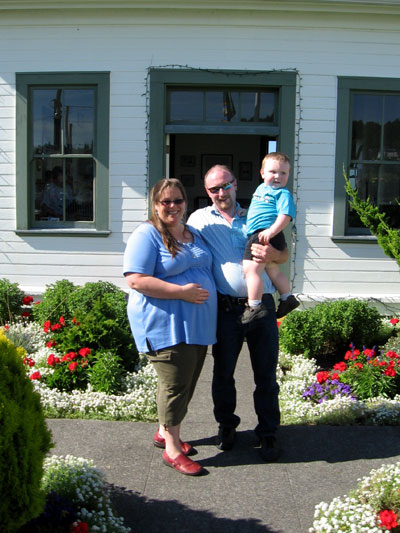Amylynn and Randy Richards with son Caleb at the 100th birthday party of the Mukilteo Lighthouse. The couple courted on the lawn of the lighthouse before they got married and have been interested in lighthouses ever since. Although they have six children, only two came to the birthday party with them. Their son Caleb has been to 24 lighthouses in three states before his 1st birthday. Amylynn is expecting another child in December. Back to the edition of: October 2006