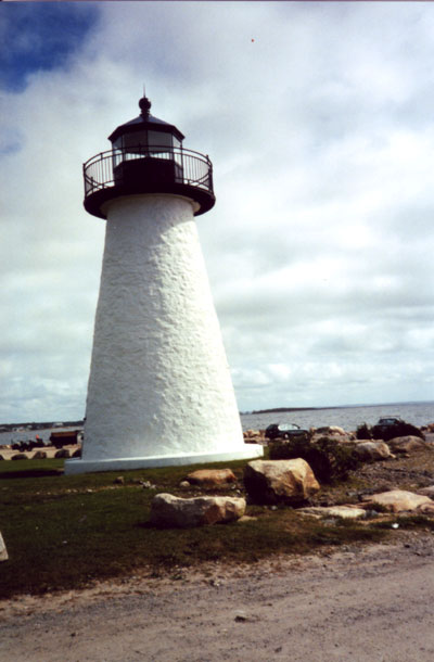 Ned's Point Lighthouse as it appears today with a different lantern room. In 1923, the keeper's house was removed from the site and floated across the bay to become the keeper's house for Wing's Neck Lighthouse. Today, Ned's Point Lighthouse is part of a beautiful park in the town of Mattapoisett, MA and the U.S. Coast Guard Flotilla 67 maintains the tower. Photograph by Mrs. Raymie Degnan of Monterey, TN. Back to the edition of: October 2006