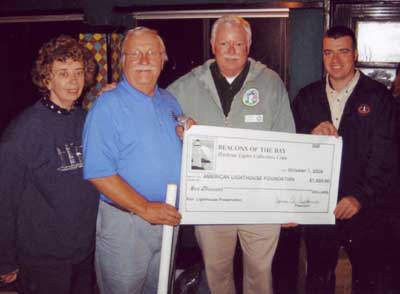 Donna and Jerry Siatowski (l), President of Beacons of the Bay Harbour Lights Collector Club, present Tim Harrison and Bob Trapani, Jr. with the club’s $1,000 donation to the American Lighthouse Foundation. Back to the edition of: December 2006