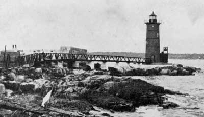 An earlier version of the walkway can be seen in this circa 1900 photo. The lighthouse was painted brown until 1902. Courtesy of Friends of Portsmouth Harbor Lighthouse. Back to the edition of: December 2006