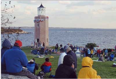The crowd begins to gather several hours before the relighting ceremony of Avery Point Lighthouse. Back to the edition of: December 2006