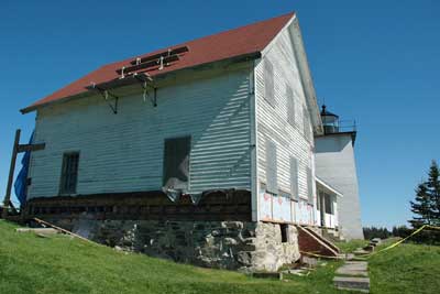 A view of the new red shingle roof on the keeper’s house, completed in the summer of 2006, which replaced a cedar shingle roof. Work on the foundation of the house will be addressed in 2007. Back to the edition of: December 2006