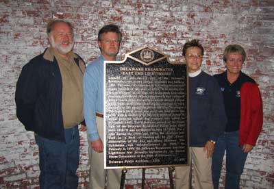 Delaware River and Bay Lighthouse Foundation board members stand next to the unveiled historic marker for the East End Light. Shown (from left to right) is Walter Palmer, Herb Von Goerres, Judith Roales and Ruth Africa. Back to the edition of: December 2006