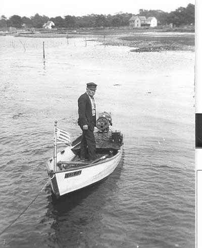 Assateague Lighthouse keeper William T. Collins in his boat with Assateague Island in the background. Photograph courtesy of the William J. Wells family. Back to the edition of: September 2007