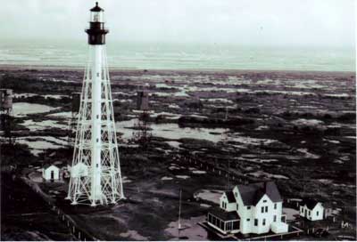 After he left Assateague Island Lighthouse, Jessie’s husband, William Collins was transferred to Cape Charles Lighthouse, which is shown here from a 1962 Coast Guard photo in the archives of Lighthouse Digest. Built in 1895 it is the tallest lighthouse of its construction type in the United States and following behind Cape Hatteras Lighthouse in North Carolina it is the second tallest lighthouse in the United States. Back to the edition of: September 2007